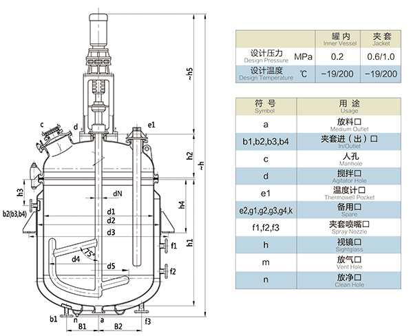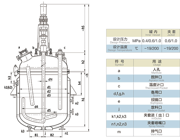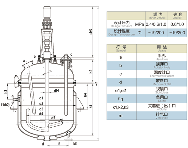 【K型搪玻璃反應器的技術參數】:
