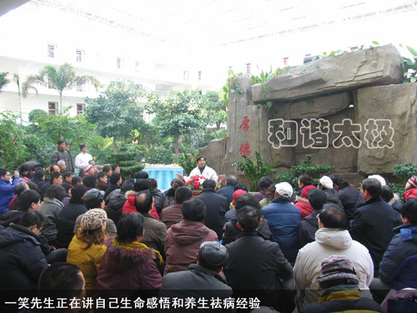一笑先生這個簡單易行百益無害的神意太極養生法,幫助了很多身患頑疾的員工重返工作崗位,對待不和諧的員工,總要先從其身心觀察,幫助找到問題的根源,科學的對待。目前,其養生法竟然使身患癌癥之王,晚期胰腺癌、子宮癌疼痛難耐的張女士,也得到很好的調理,過上了正常人的生活。很多晚期癌癥人及嚴重三高病人等重新走上了健康快樂的生活,糖尿病患者也終會因自身能產生胰島素而徹底痊愈。還幫助眾多的患乳腺癌婦女不再復發,極好的降低更年期對婦女身心的危害,使之健康快樂的生活。很多各種各樣的危重病友也獲得了健康的生活,而且身心皆美,家庭和諧。