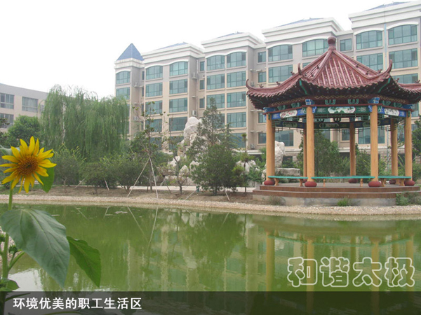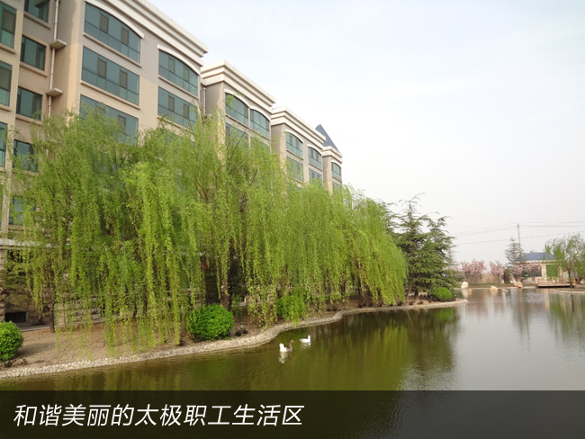 2008年,太極公司投資近8000萬元建成了職工公寓樓3座,戶外綠樹溪湖環繞,每戶面積170平米,統一配置60寸夏普電視等。所建成的職工單身公寓樓采用四星級標準,共176間房,人均戶面積50平米,統一配置電視、網絡、洗浴間、床柜、空調、暖氣、桌椅等。而且單身公寓內設有3000余平方米的生態園林和高檔游泳池,一年四季綠樹茂盛常春。