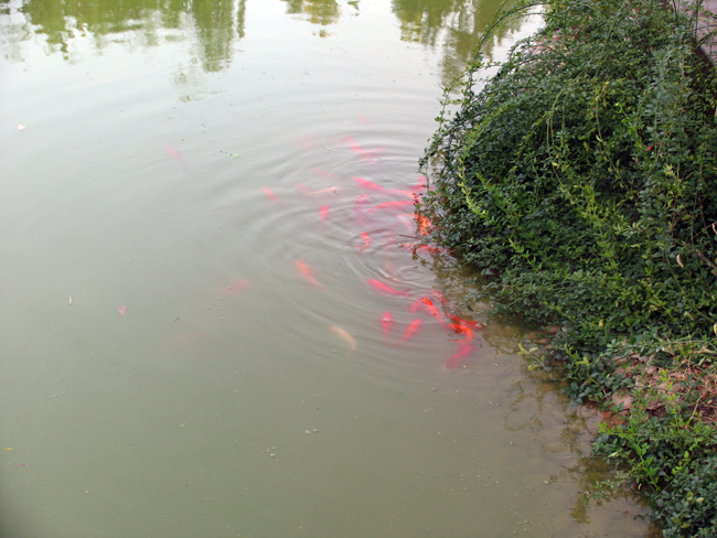 正在嬉戲的錦鯉